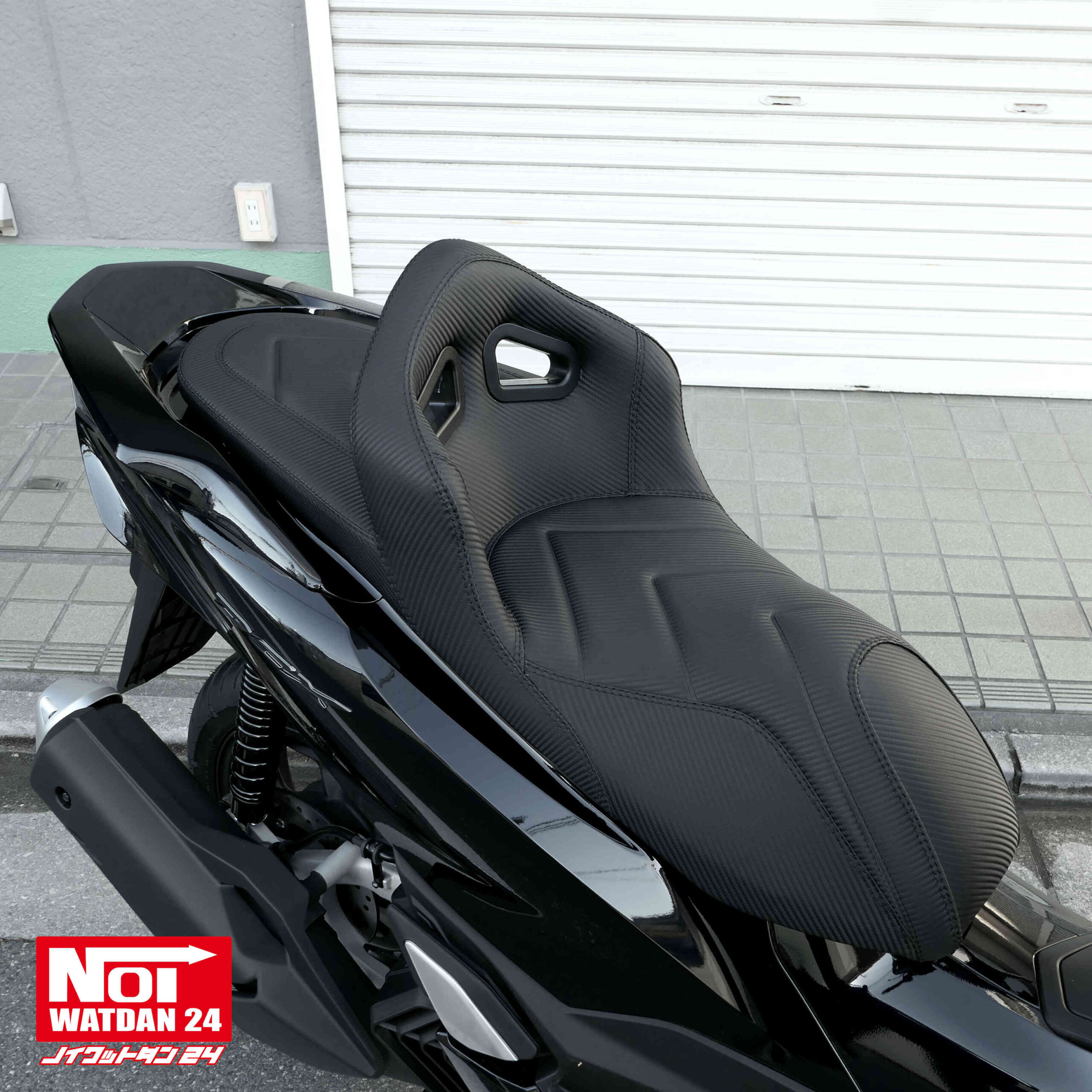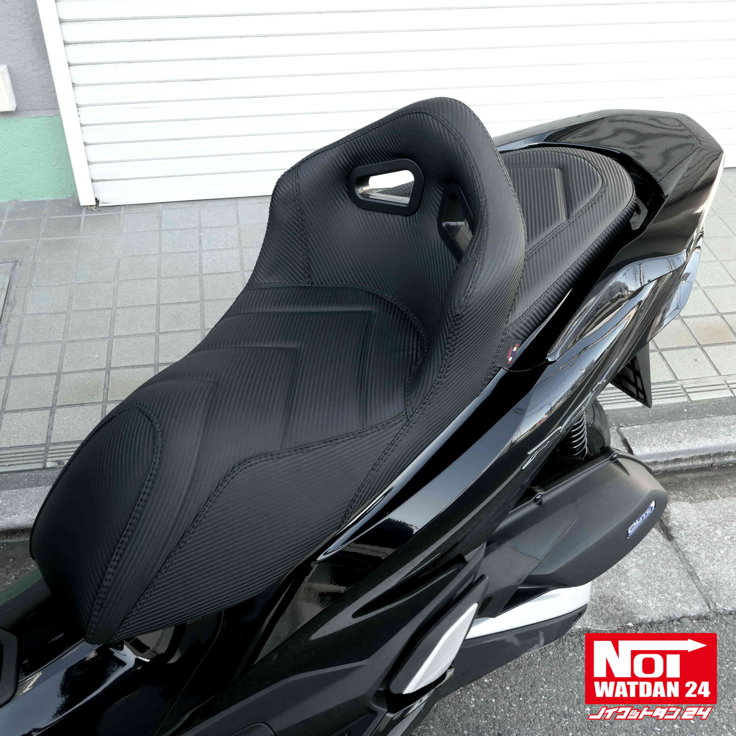ホールド感のある背もたれとNOI WATDAN24オリジナルのシートデザインで長距離走行やツーリングも快適な他、背もたれ部にはタンデムグリップも付いており、タンデム走行も安心です。